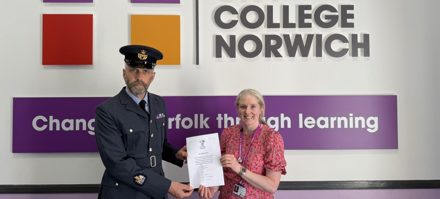 City College Norwich has affirmed its commitment to those who serve or have served in the Armed Forces, and their families, by signing the Armed Forces Covenant.